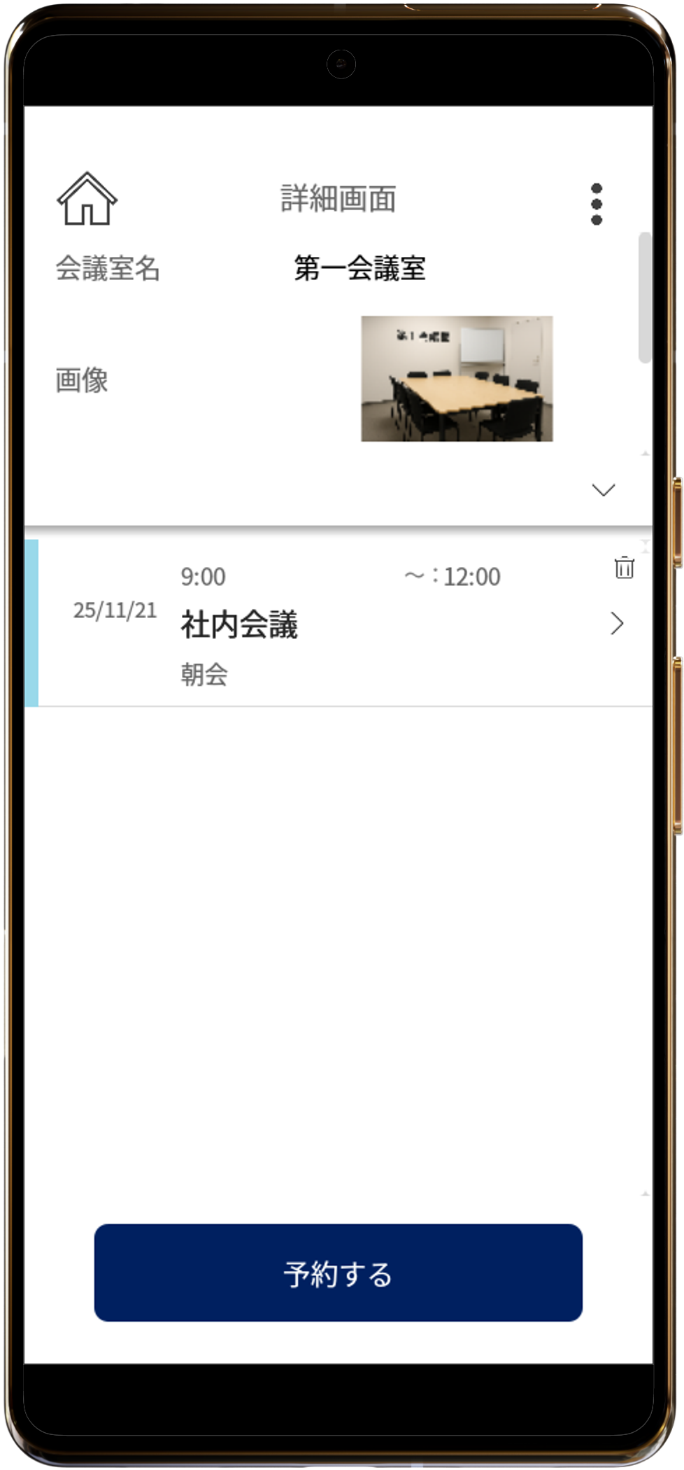 会議室の空き状況をリアルタイムに確認し、そのまま予約できるアプリです。 ダブルブッキングを防ぎ、必要な機材や人数も一目で把握可能。 自動カレンダー表示により、企業全体の会議運用を効率化し、スペース活用を最大化します。