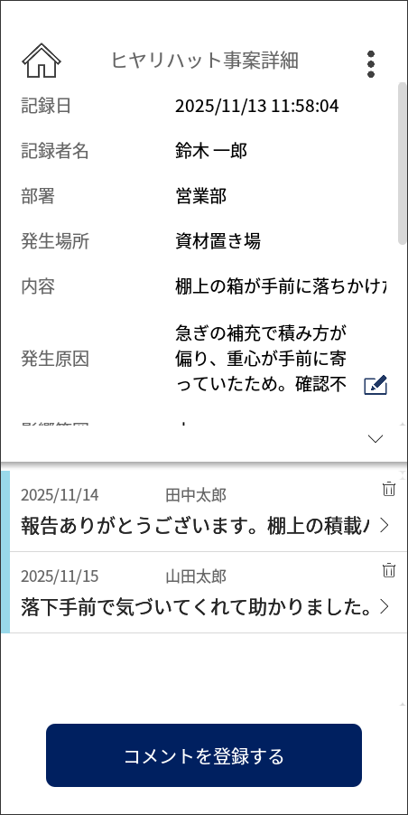 ヒヤリハット情報を構造化して記録し、再発防止に活かせる