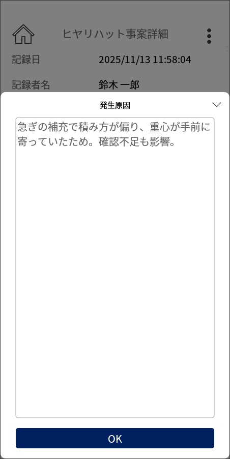 現場で起きたヒヤリ・ハット事例をスマホで即時入力できる安全管理アプリです。