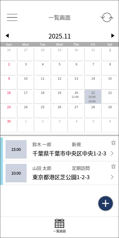 - 訪問予定と実績を一元管理でき、担当者間でスケジュールを簡単に共有できます