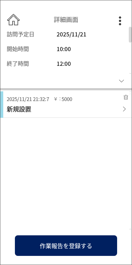 訪問日程の管理から作業報告書の作成、部品交換の料金計算まで自動化できるメンテナンス向けアプリです。