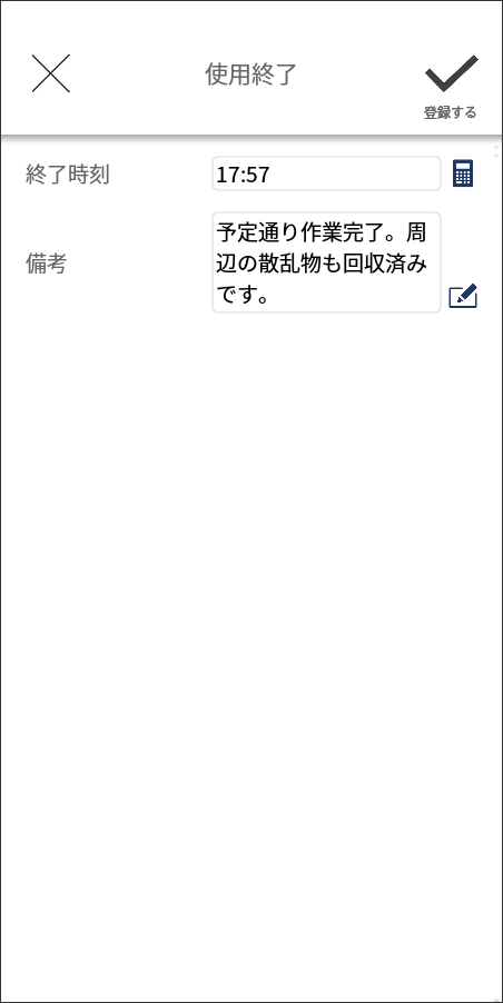 実際の使用開始・終了を記録して稼働実績を蓄積