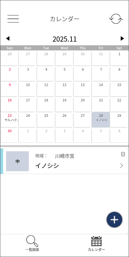 クマ・イノシシ・シカ・サルなど害獣の目撃・被害情報・捕獲対応を記録。