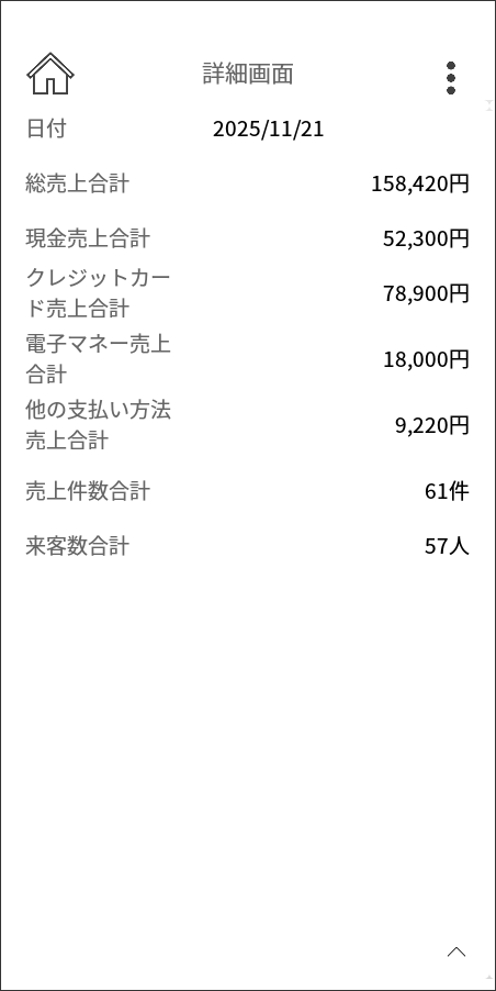- 現金・カード・電子マネーの売上が自動集計され、店舗報告業務を効率化できる