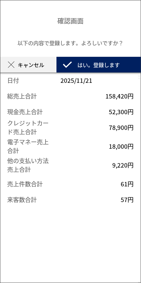 - 現金・カード・電子マネーの売上が自動集計され、店舗報告業務を効率化できる