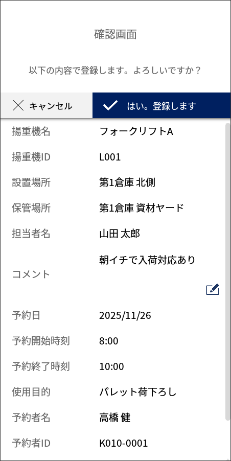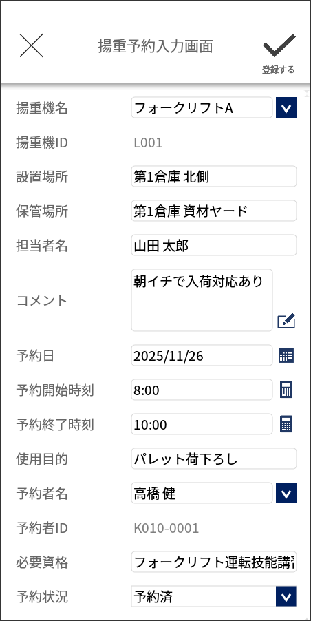 揚重機の予約・使用履歴・安全確認を一元管理できるアプリです。