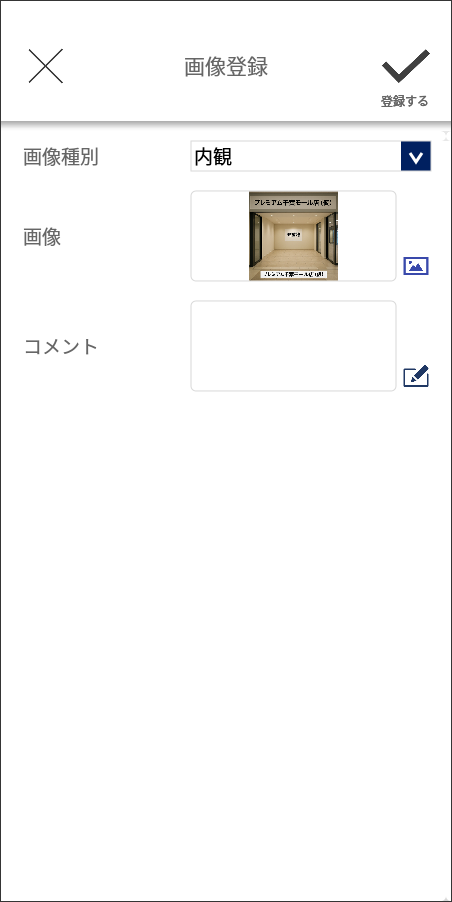 外観、周辺環境、競合店舗、交通アクセスなど、写真を種別ごとに整理して登録できます。調査時の写真を視覚的に分類できるため、現地状況がすぐに把握でき、社内資料としても利用しやすくなります。