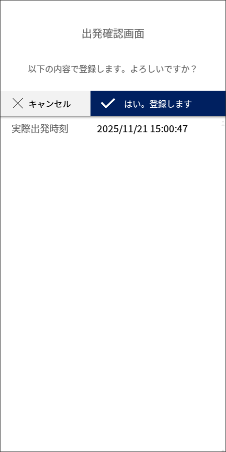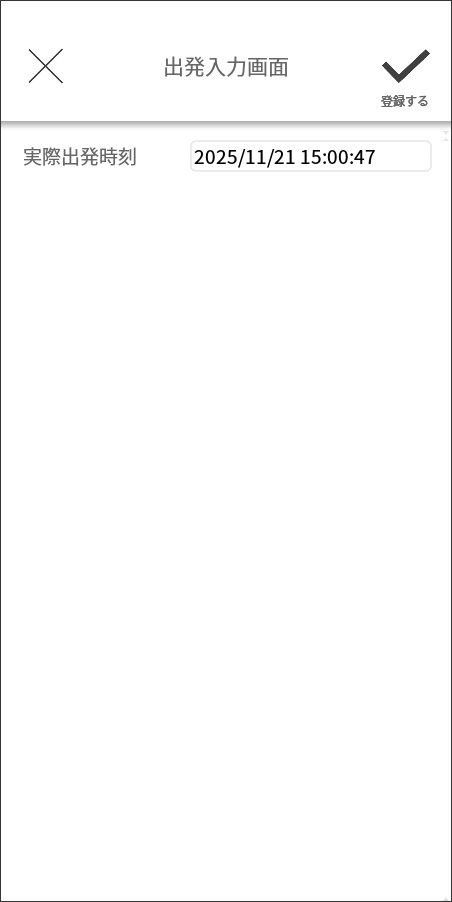 出発時・到着時の実際の時刻をタップ入力するだけで記録できます。計画との差分表示も簡単に確認できるため、遅延理由の把握や改善策検討に役立ちます。運転手ごとに入力できるため、複数配送の管理にも対応できます。