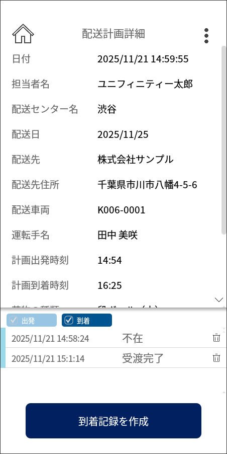 配送計画から出発・到着実績、荷物状態までを一元管理するアプリです。