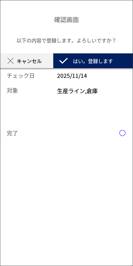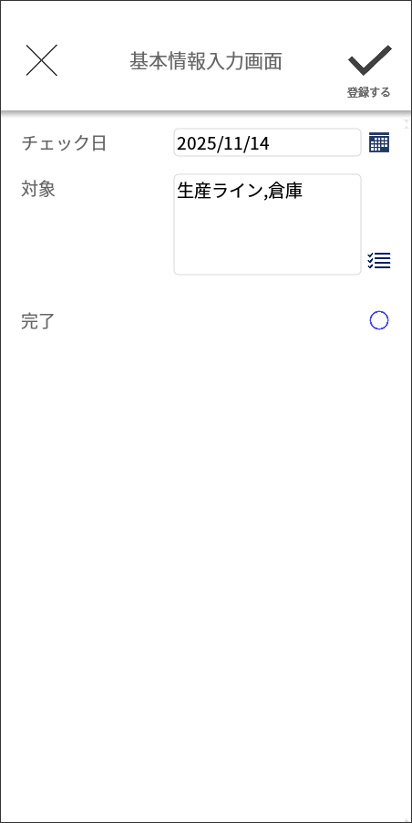 対象名が長い場合でも自動で折り返して表示でき、画面全体の視認性が向上します。入力者だけでなく、確認者も誤認しにくい表示になり、現場のチェック作業がスムーズになります。特に対象名が長くなりがちな製造・物流現場で有効です。