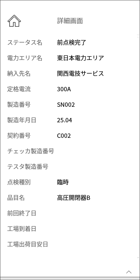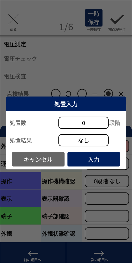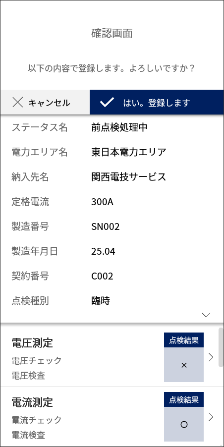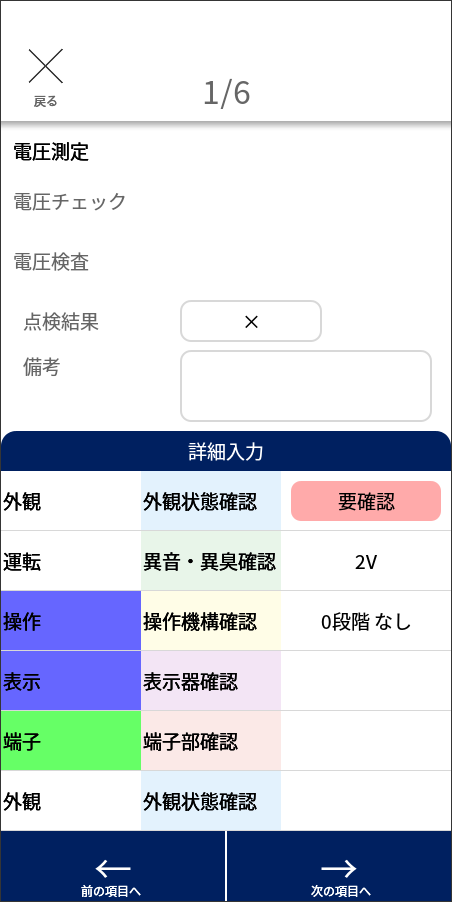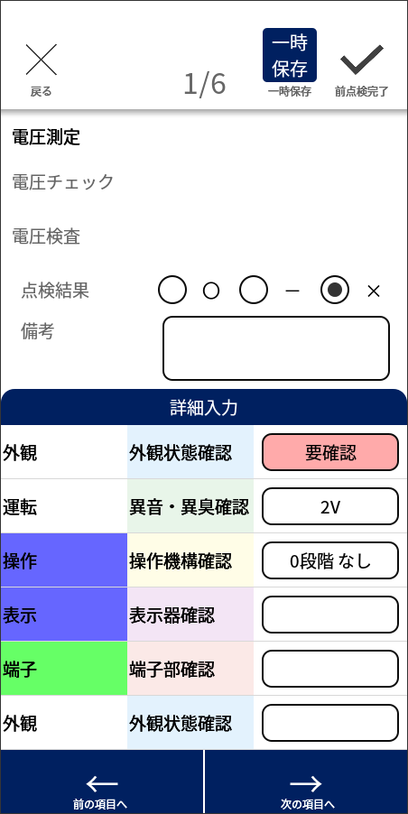- 製品型番・仕様に応じた点検項目を自動表示し、点検品質を均一化