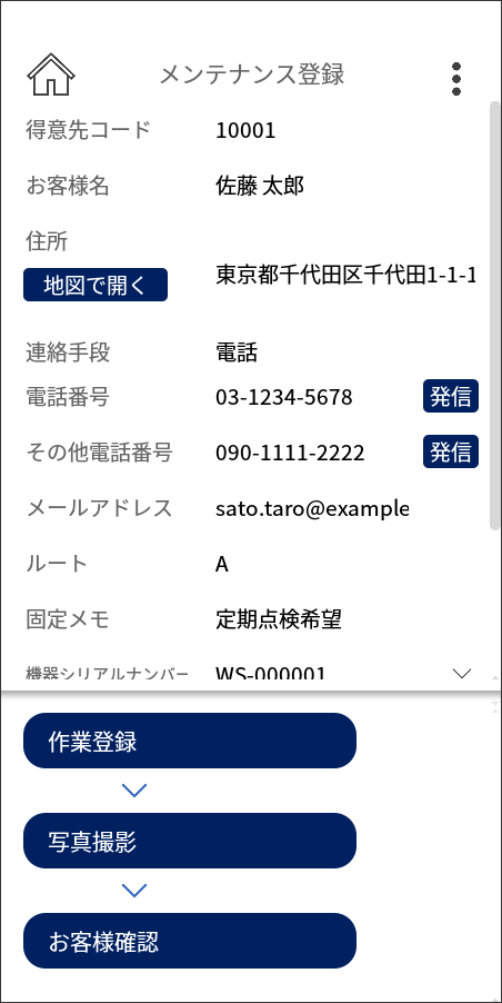 顧客情報、設置場所、機器情報と過去の作業履歴を紐づけて管理できます。